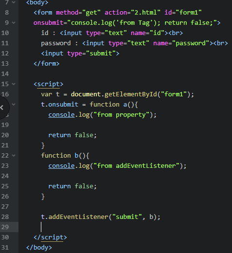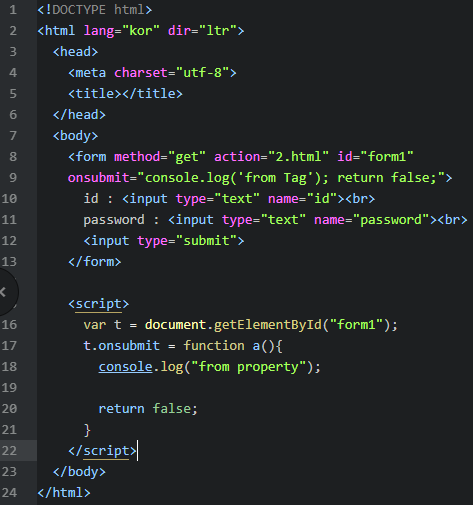 그리고 함수 a를 onsubmit속성을 이용하여 getElementById 메소드를