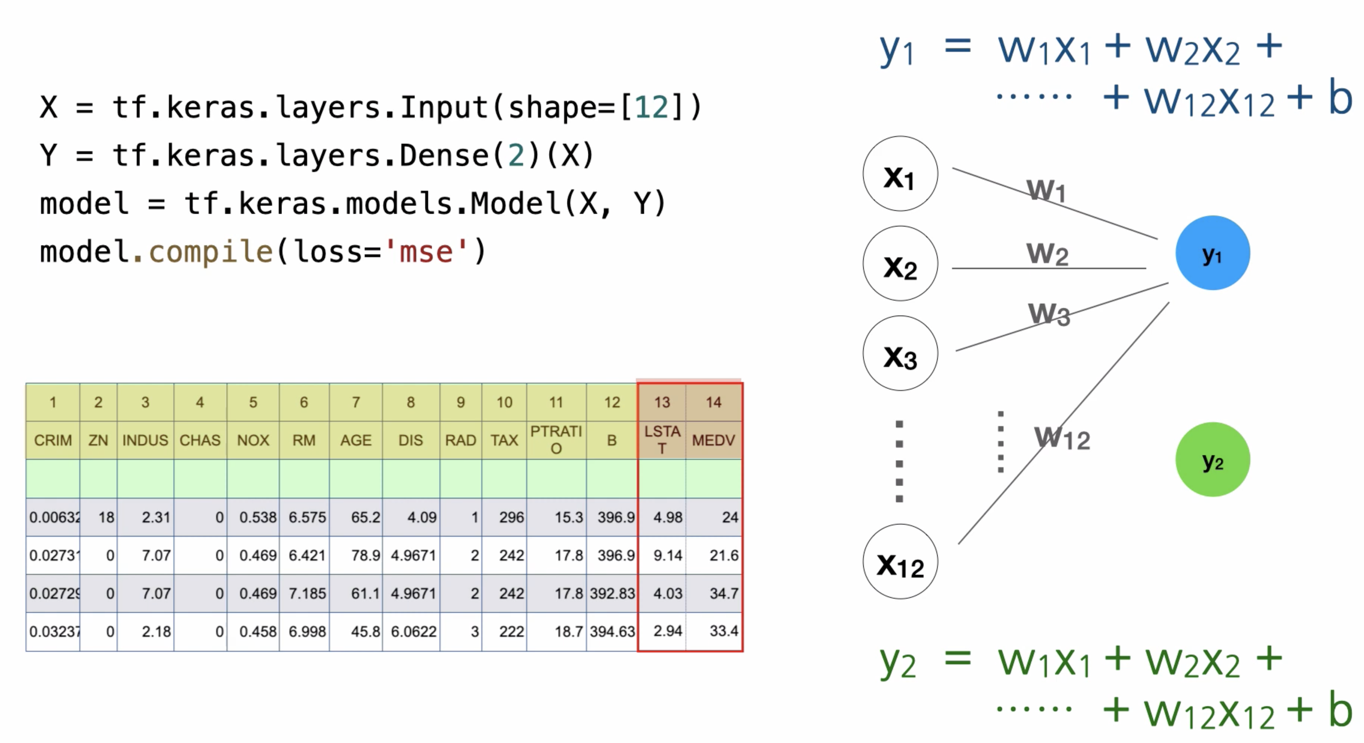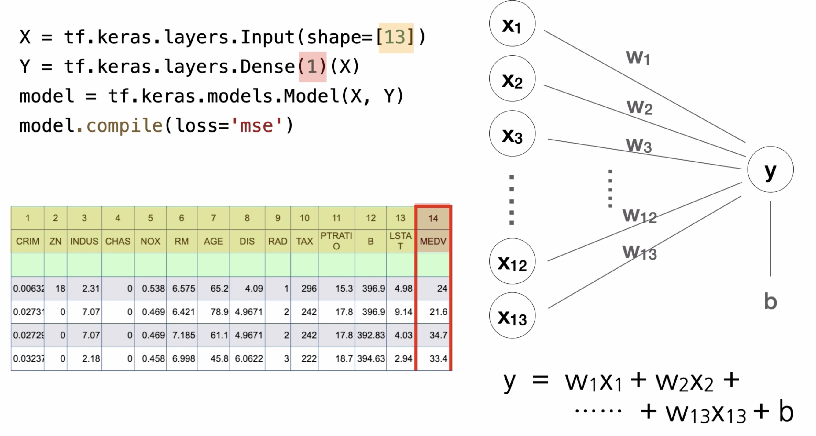 y = w1x1 + w2x2 + ........ + w13x13 + b