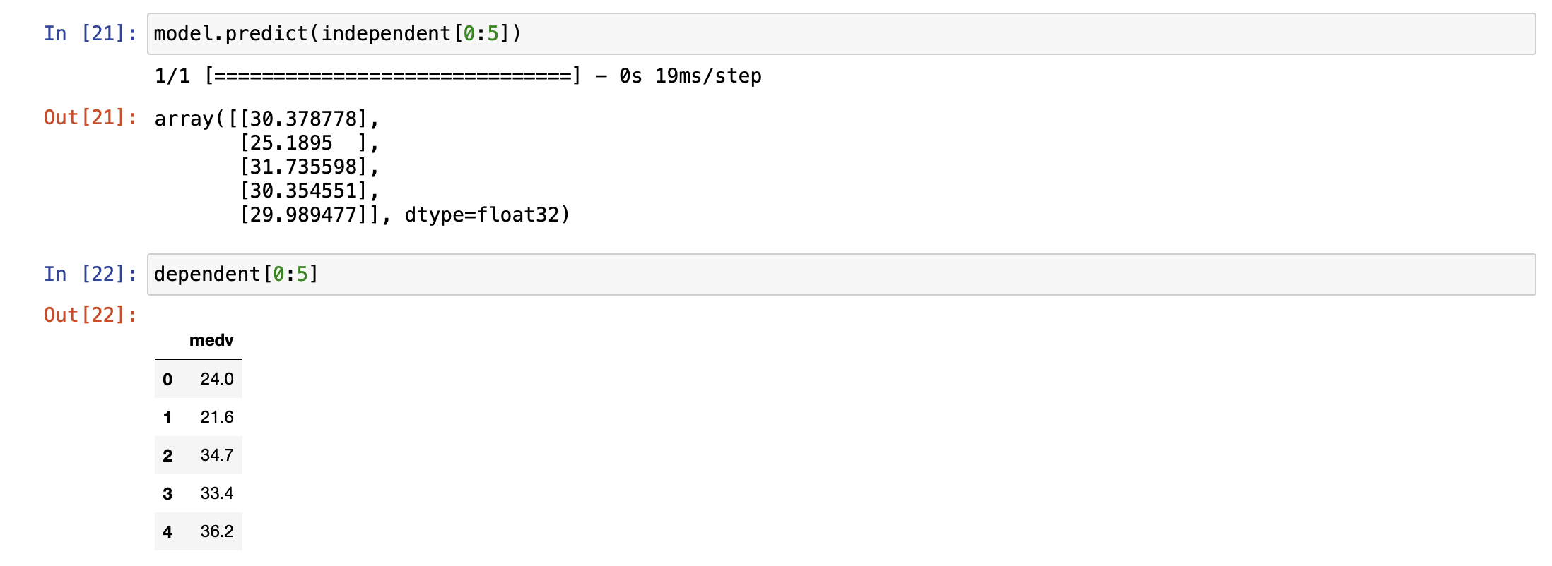 실제로 종속변수의 값과 조금의 차이는 있으나, loss를 생각하면 올바르게 잘 학습 된것으로 보인다.